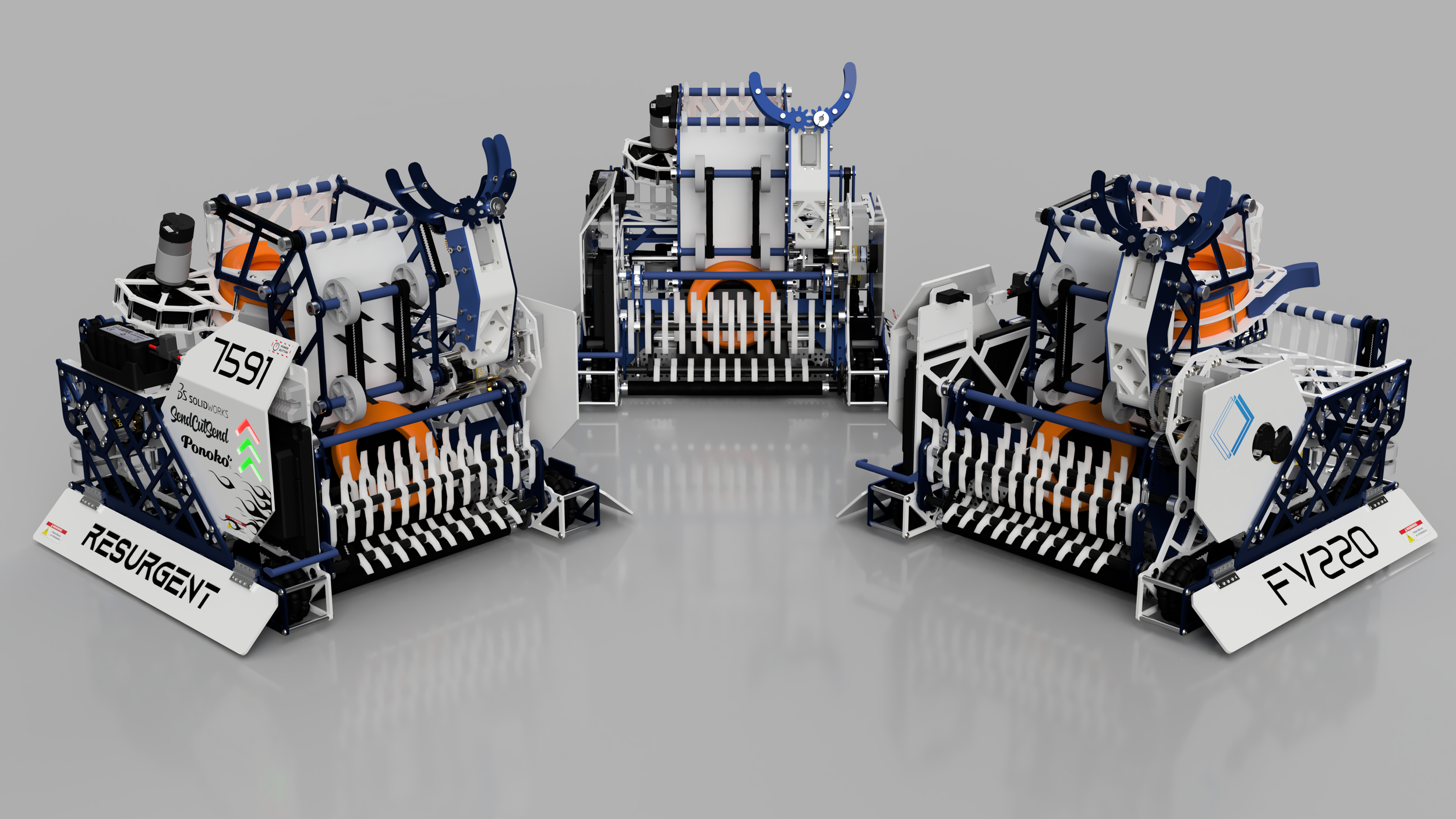 The Resurgent Dual-Vectoring Vertical Turret System is a 6WD robot concept designed to compete in the FIRST Tech Challenge 2021 Ultimate Goal season. The design language of this robot revolves around allowing the bot to function as a stable disc-firing platform against defensive plays from opponent teams.