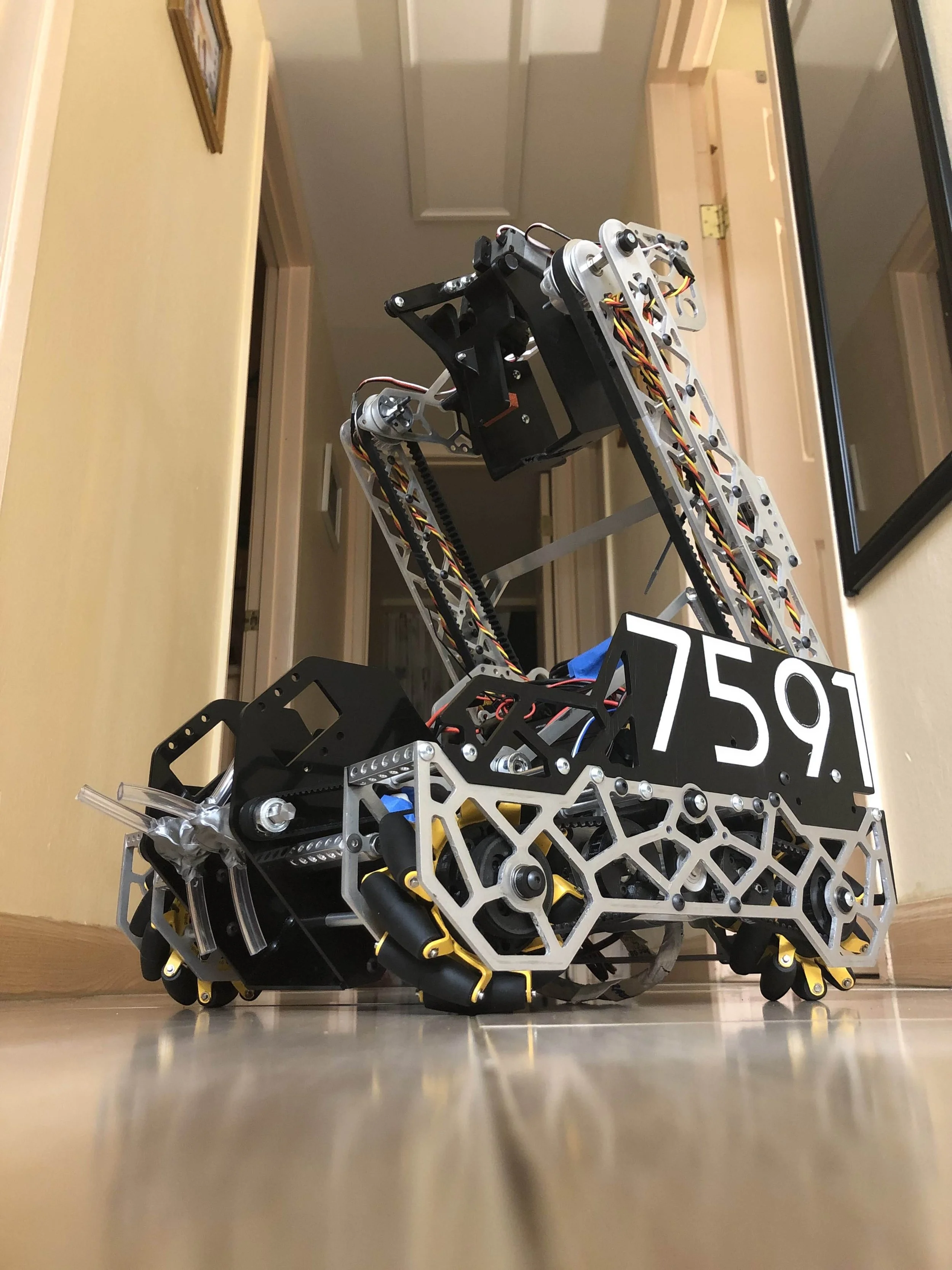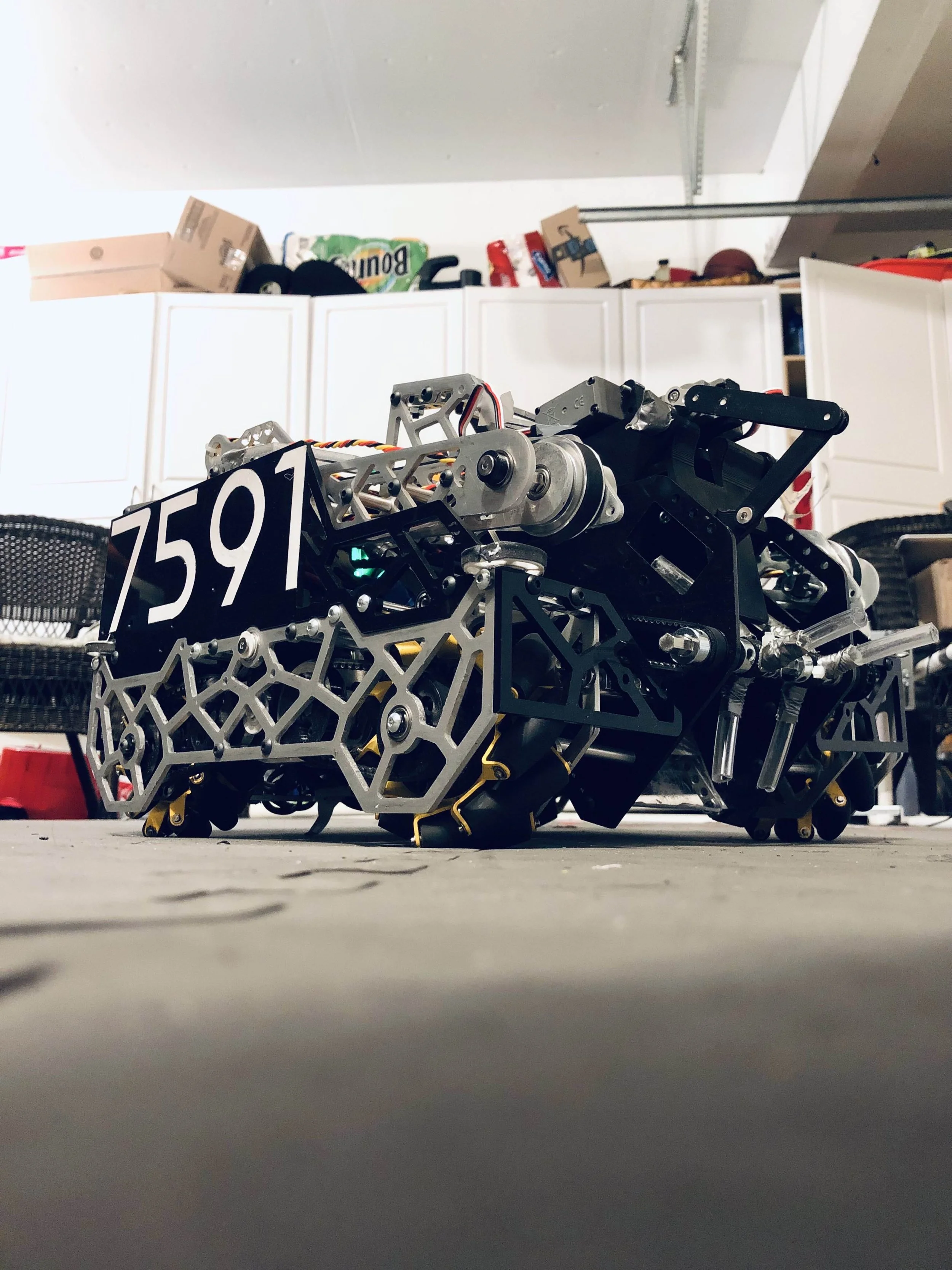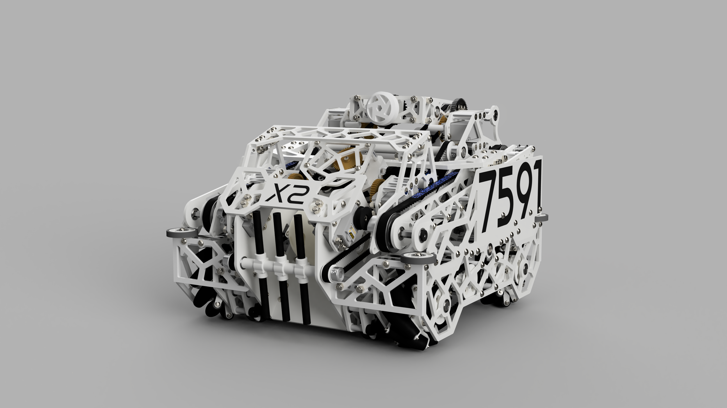 Experimental Test Vehicle 1. The beginning of the "X" class lineup of robots for the official FIRST Tech Challenge 2021-22 Season. A senior year finale for both me and my team captain (Athul), X1 was a “defy the norms” ambitious idea to replace standard “meta” heavy lift linear slides with a lighter, more versatile virtual 4-bar arm-based solution.